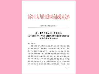 英皇体育(中国)体育官方网站顺利通过新乡市企业职业技能等级认定机构备案