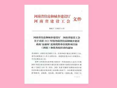 272022.01英皇体育(中国)体育官方网站焊工班组荣获“2021年度河南省住房和城乡建设系统‘安康杯’竞赛优胜班组”称号 -