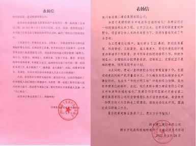 112022.02新乡建工建设有限公司和河南新飞智家科技有限公司向英皇体育(中国)体育官方网站发来表扬信 -